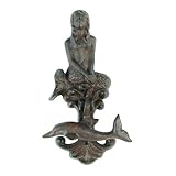 Cast IronMermaid Dolphin DoorknockerLet this nautical duo alert you when guests arrive!The perfect door accent for the mermaid collector.Finished in our popular rust color.Measures 8"H x 5"W