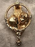 This brass plated, cast metal door knocker of a couple kissing is a reproduction of a popular French knocker from the 1940's. The knocker measures 5 inches long, 3 inches wide, and has 2 screw holes in the main plate for mounting to your door. Screws are provided. It makes a great gift for newlyweds.